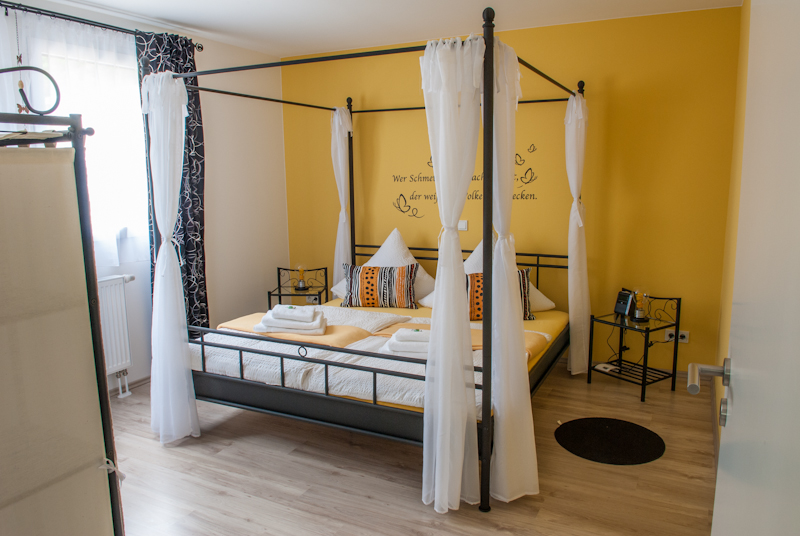 Ein Highlight ist das 15 m² große, kuschelige Schlafzimmer mit romantischem Himmelbett.