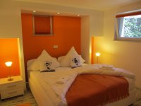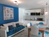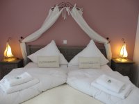 Diese, unsere größte Ferienwohnung, besteht aus einem Wohnzimmer mit vollausgestatteter Küche, Ess- und TV-Bereich; 2 romantischen Schlafzimmern und einem Wellnessbad mit Sauna.